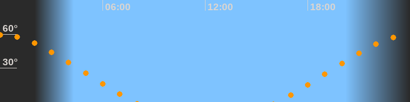 | Höchster Stand (Kulmination) | 00:00 Uhr (h = 59,5°) |