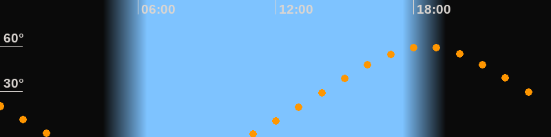 | Höchster Stand (Kulmination) | 18:30 Uhr (h = 59,5°) |
