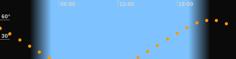 | Aufgang | 13:34 Uhr im Nordosten (αAz = 56°) |