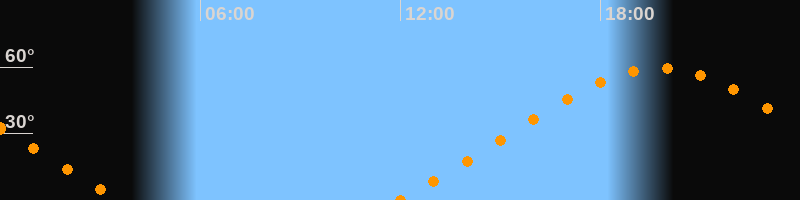 | Höchster Stand (Kulmination) | 19:46 Uhr (h = 59,5°) |