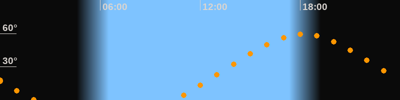 | Höchster Stand (Kulmination) | 18:11 Uhr (h = 59,5°) |