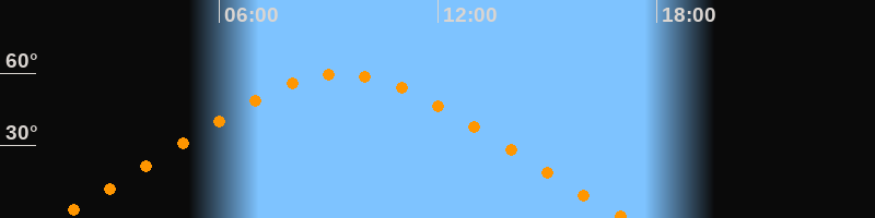| Höchster Stand (Kulmination) | 09:21 Uhr (h = 59,5°) |