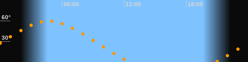 | Höchster Stand (Kulmination) | 04:42 Uhr (h = 59,5°) |