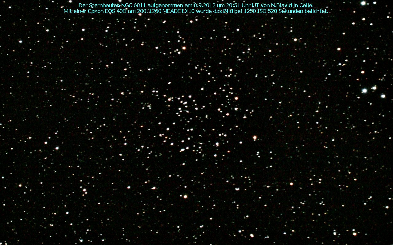 NGC 6811 ist ein ein offener Sternhaufen vom Typ III 1 p. Sein Alter beträgt ca. 700 Millionen Jahre. Entdeckt wurde das Objekt 1829 von John Herschel.
