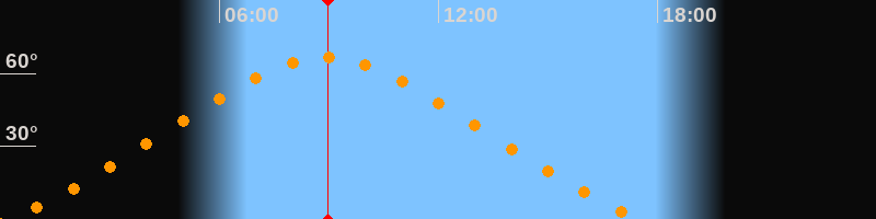 | Höchster Stand (Kulmination) | 08:54 Uhr (h = 66,6°) |