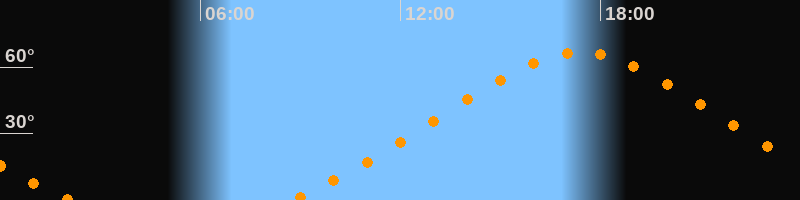 | Höchster Stand (Kulmination) | 17:23 Uhr (h = 66,6°) |