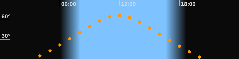 | Höchster Stand (Kulmination) | 11:53 Uhr (h = 66,6°) |