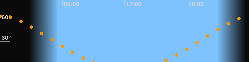 | Aufgang | 15:30 Uhr im Nordosten (αAz = 42,5°) |