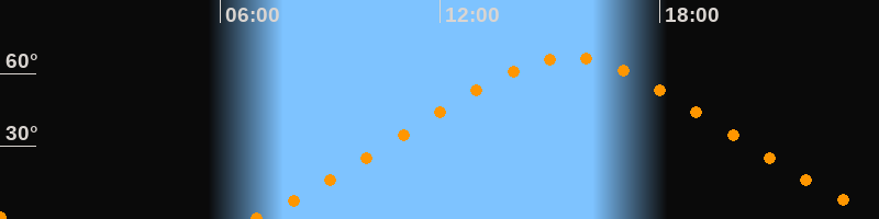 | Höchster Stand (Kulmination) | 15:30 Uhr (h = 66,6°) |