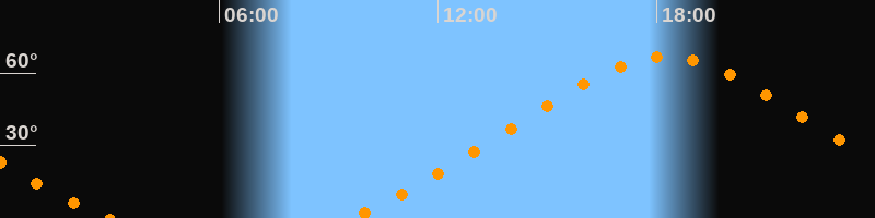 | Höchster Stand (Kulmination) | 18:14 Uhr (h = 66,6°) |