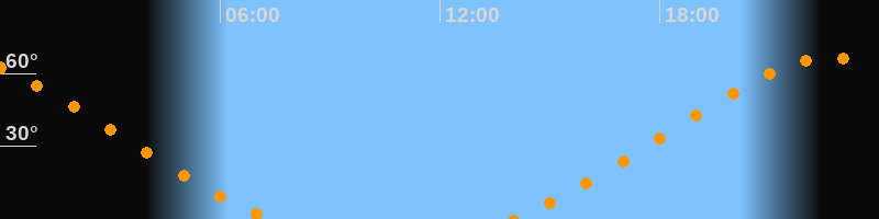 | Untergang | 07:23 Uhr im Nordwesten (αAz = 317,5°) |