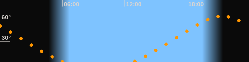 | Aufgang | 12:43 Uhr im Nordosten (αAz = 42,5°) |
