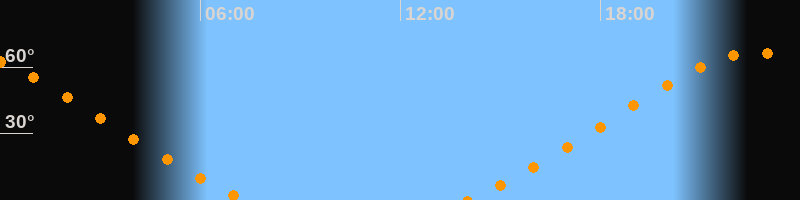 | Aufgang | 13:59 Uhr im Nordosten (αAz = 42,5°) |