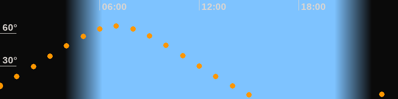 | Höchster Stand (Kulmination) | 07:00 Uhr (h = 66,6°) |