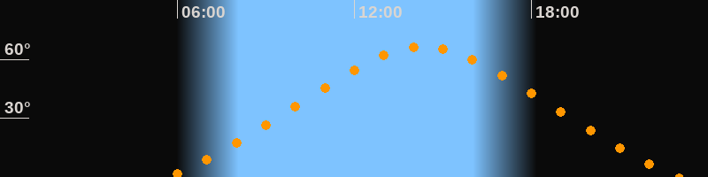 | Höchster Stand (Kulmination) | 14:20 Uhr (h = 66,6°) |