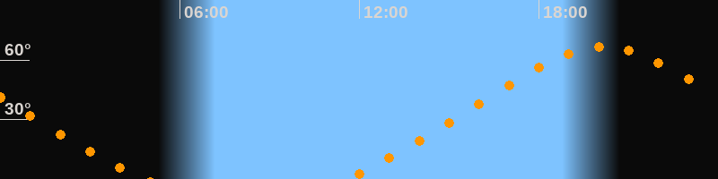 | Höchster Stand (Kulmination) | 20:09 Uhr (h = 66,6°) |