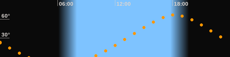 | Höchster Stand (Kulmination) | 18:13 Uhr (h = 66,6°) |