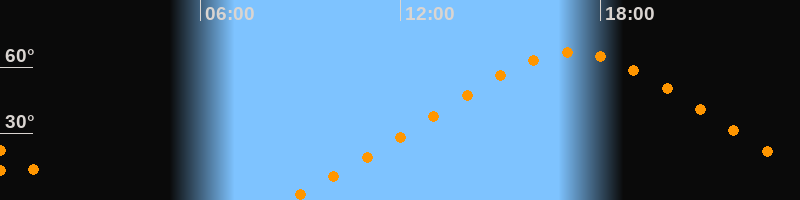 | Höchster Stand (Kulmination) | 17:09 Uhr (h = 66,6°) |