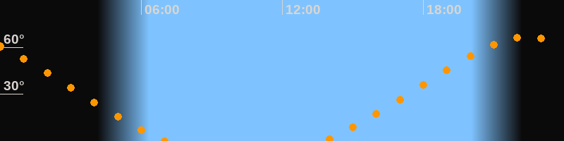 | Untergang | 07:06 Uhr im Nordwesten (αAz = 317,5°) |