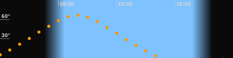 | Höchster Stand (Kulmination) | 07:54 Uhr (h = 66,6°) |