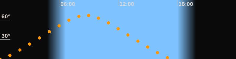 | Höchster Stand (Kulmination) | 08:45 Uhr (h = 66,6°) |