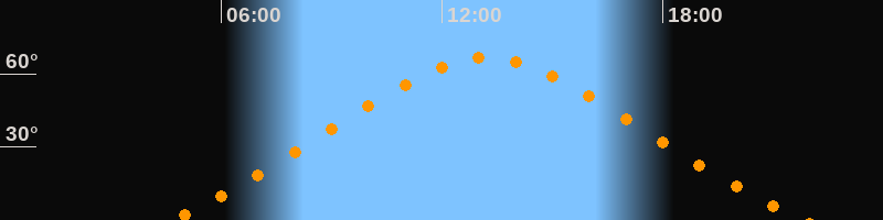 | Höchster Stand (Kulmination) | 13:13 Uhr (h = 66,6°) |