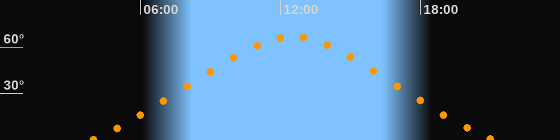 | Höchster Stand (Kulmination) | 12:31 Uhr (h = 66,6°) |