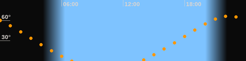 | Untergang | 07:03 Uhr im Nordwesten (αAz = 317,5°) |