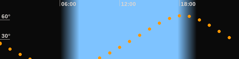 | Höchster Stand (Kulmination) | 18:19 Uhr (h = 66,6°) |