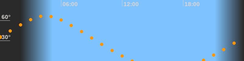 | Untergang | 13:07 Uhr im Nordwesten (αAz = 317,5°) |