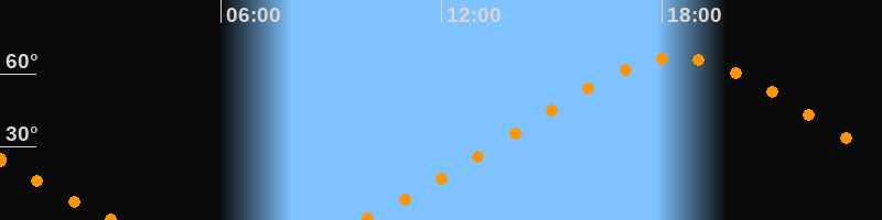 | Höchster Stand (Kulmination) | 18:25 Uhr (h = 66,6°) |