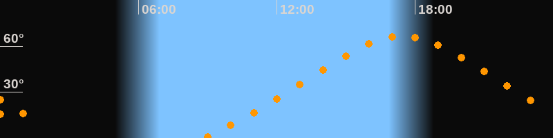 | Höchster Stand (Kulmination) | 17:26 Uhr (h = 66,6°) |