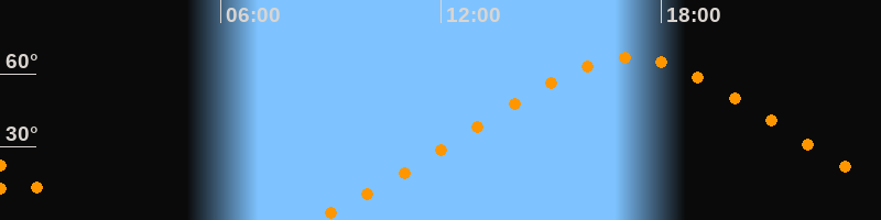 | Höchster Stand (Kulmination) | 17:08 Uhr (h = 66,6°) |
