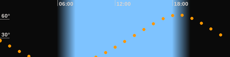 | Höchster Stand (Kulmination) | 18:33 Uhr (h = 66,6°) |