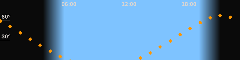 | Höchster Stand (Kulmination) | 22:07 Uhr (h = 66,6°) |