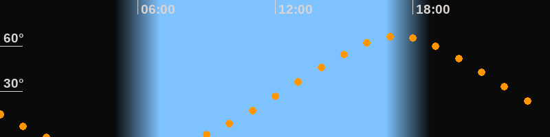 | Höchster Stand (Kulmination) | 17:20 Uhr (h = 66,6°) |