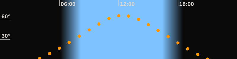 | Höchster Stand (Kulmination) | 12:26 Uhr (h = 66,6°) |