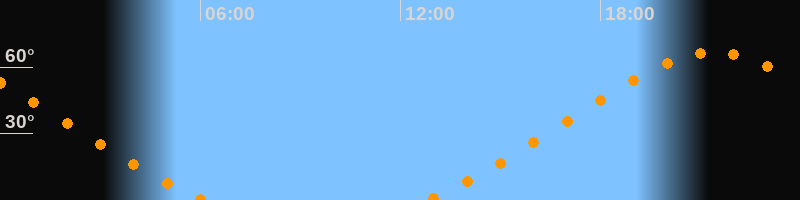 | Aufgang | 12:45 Uhr im Nordosten (αAz = 42,5°) |