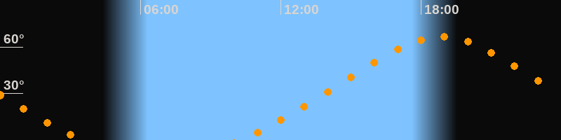 | Höchster Stand (Kulmination) | 18:52 Uhr (h = 66,6°) |