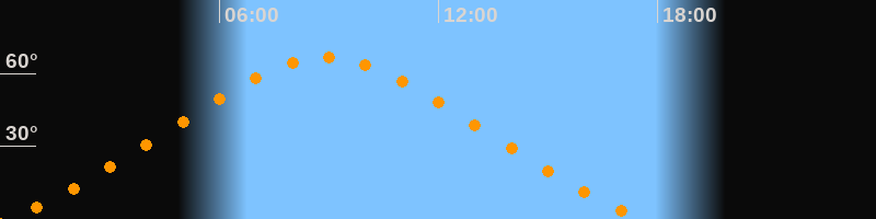 | Höchster Stand (Kulmination) | 08:54 Uhr (h = 66,6°) |