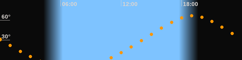 | Höchster Stand (Kulmination) | 19:05 Uhr (h = 66,6°) |