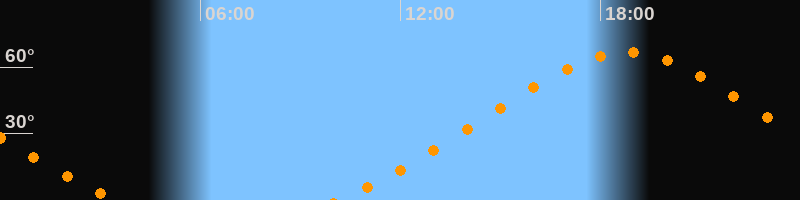 | Höchster Stand (Kulmination) | 18:47 Uhr (h = 66,6°) |