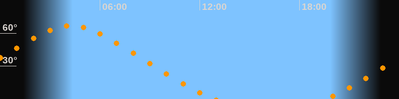 | Untergang | 12:54 Uhr im Nordwesten (αAz = 317,5°) |