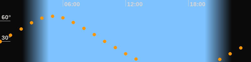 | Höchster Stand (Kulmination) | 05:02 Uhr (h = 66,6°) |