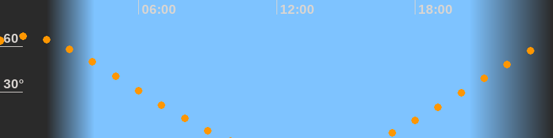 | Höchster Stand (Kulmination) | 01:06 Uhr (h = 66,6°) |