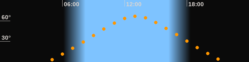 | Höchster Stand (Kulmination) | 13:03 Uhr (h = 66,6°) |