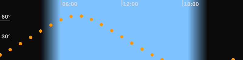 | Höchster Stand (Kulmination) | 07:32 Uhr (h = 66,6°) |