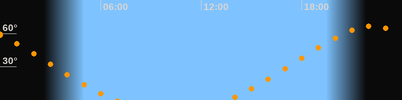 | Aufgang | 13:30 Uhr im Nordosten (αAz = 42,5°) |