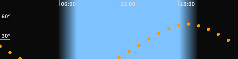 | Höchster Stand (Kulmination) | 18:54 Uhr (h = 53,4°) |
