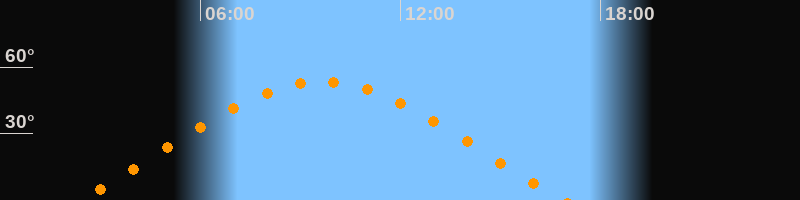 | Höchster Stand (Kulmination) | 09:38 Uhr (h = 53,4°) |